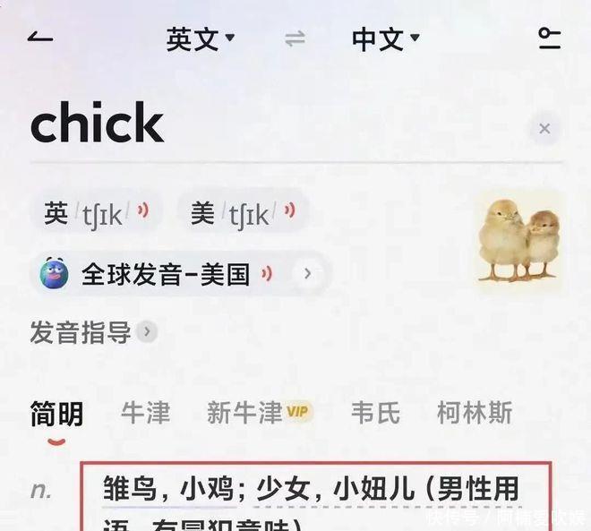 而“chick” 一词在英语中,虽有女孩的含义,但其实也是带有非常不尊重的味道,尤其在一些特定语境下,几乎等同于对女性的蔑称。